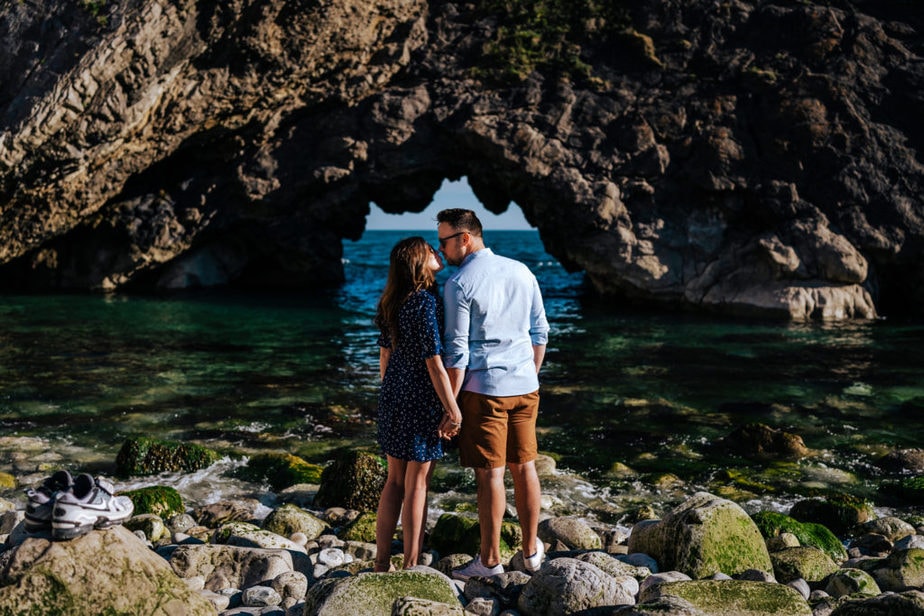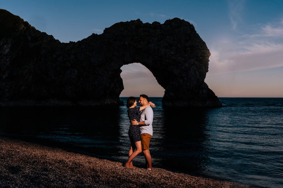 My favourite image of their Durdle Door engagement shoot, was the last one image I took on the beach. I loved the colours created by the shingle beach, turquoise of the sea and the sky as the sun was setting. Amazing! – here, take a look!