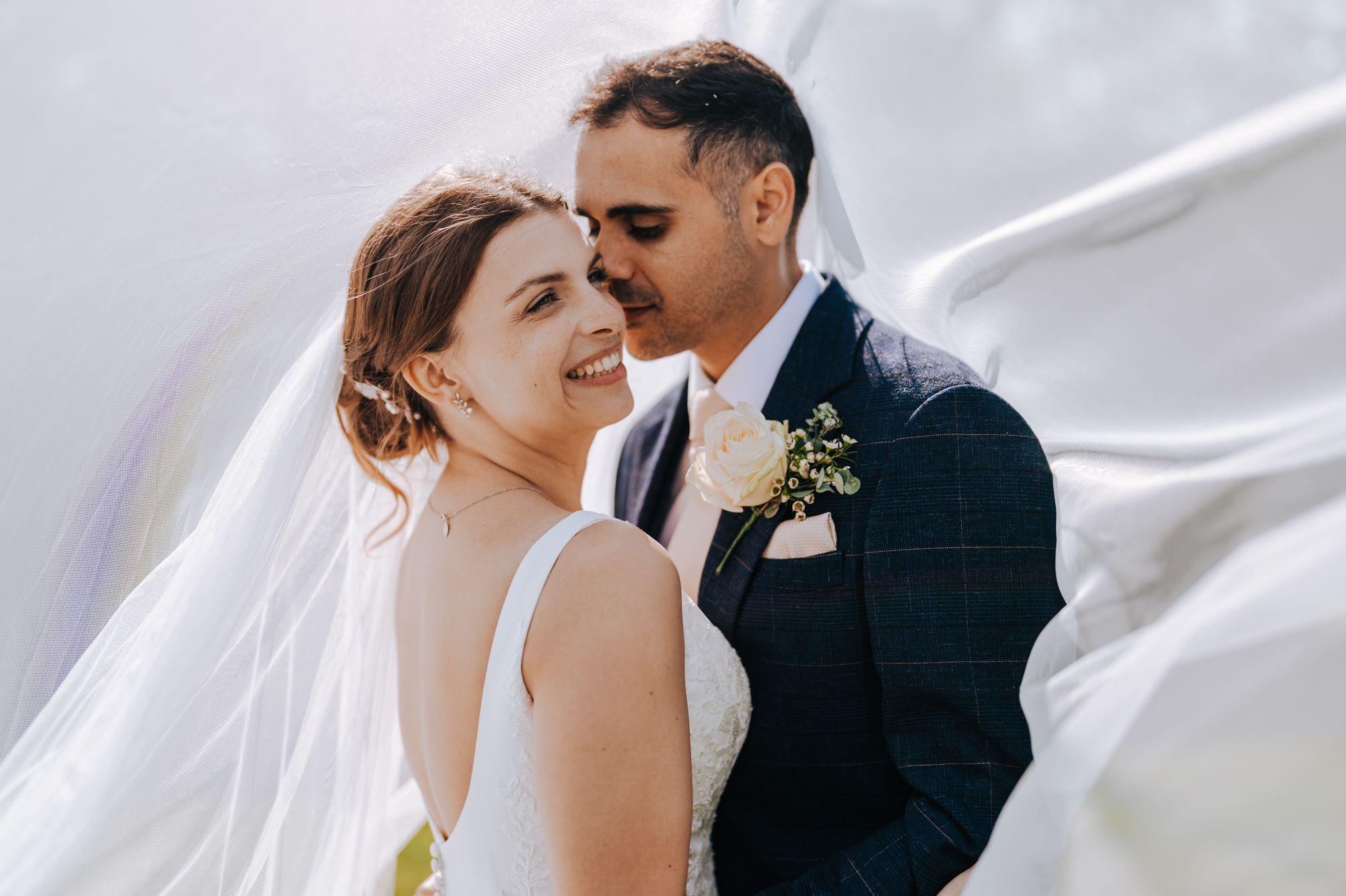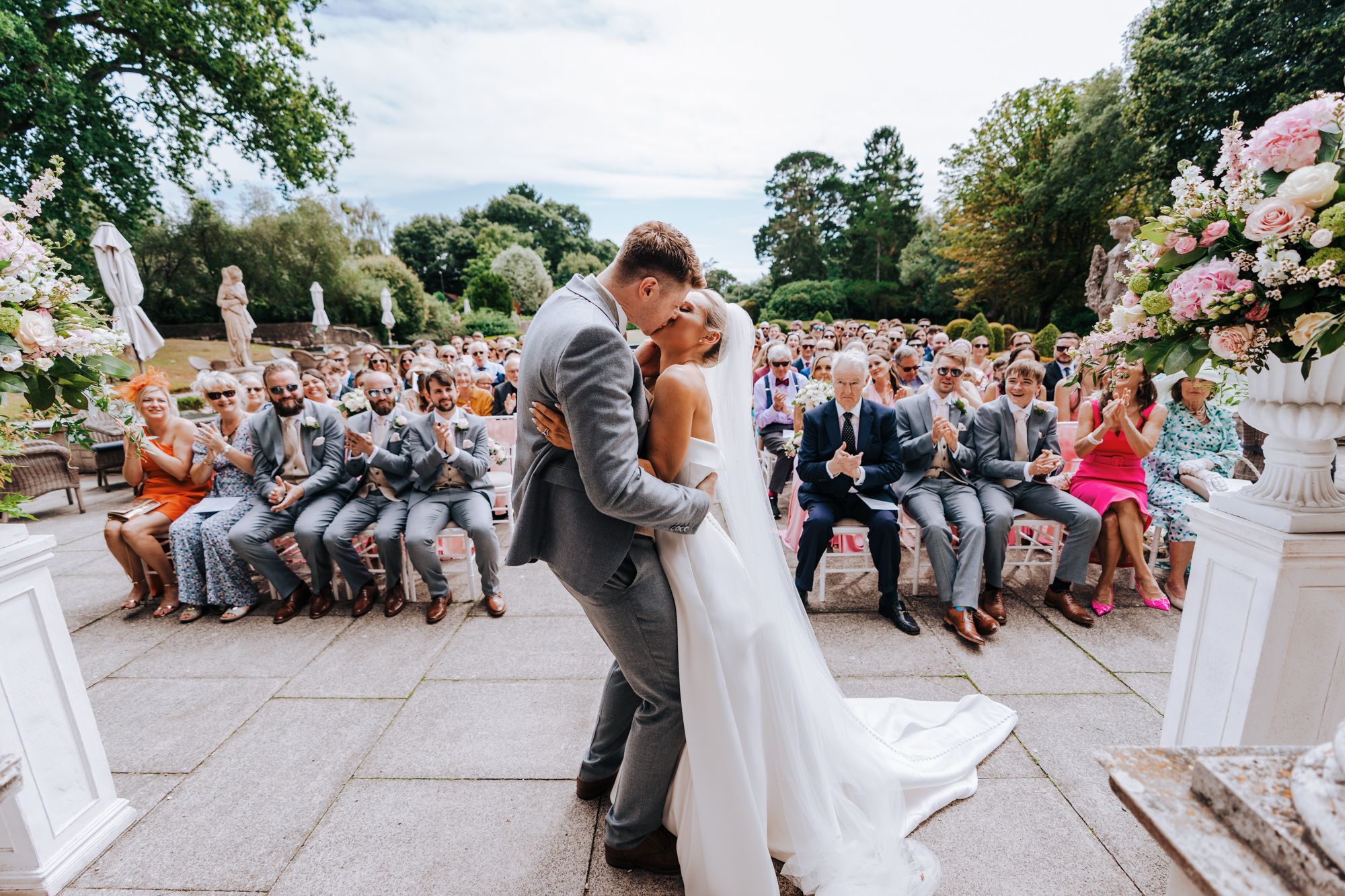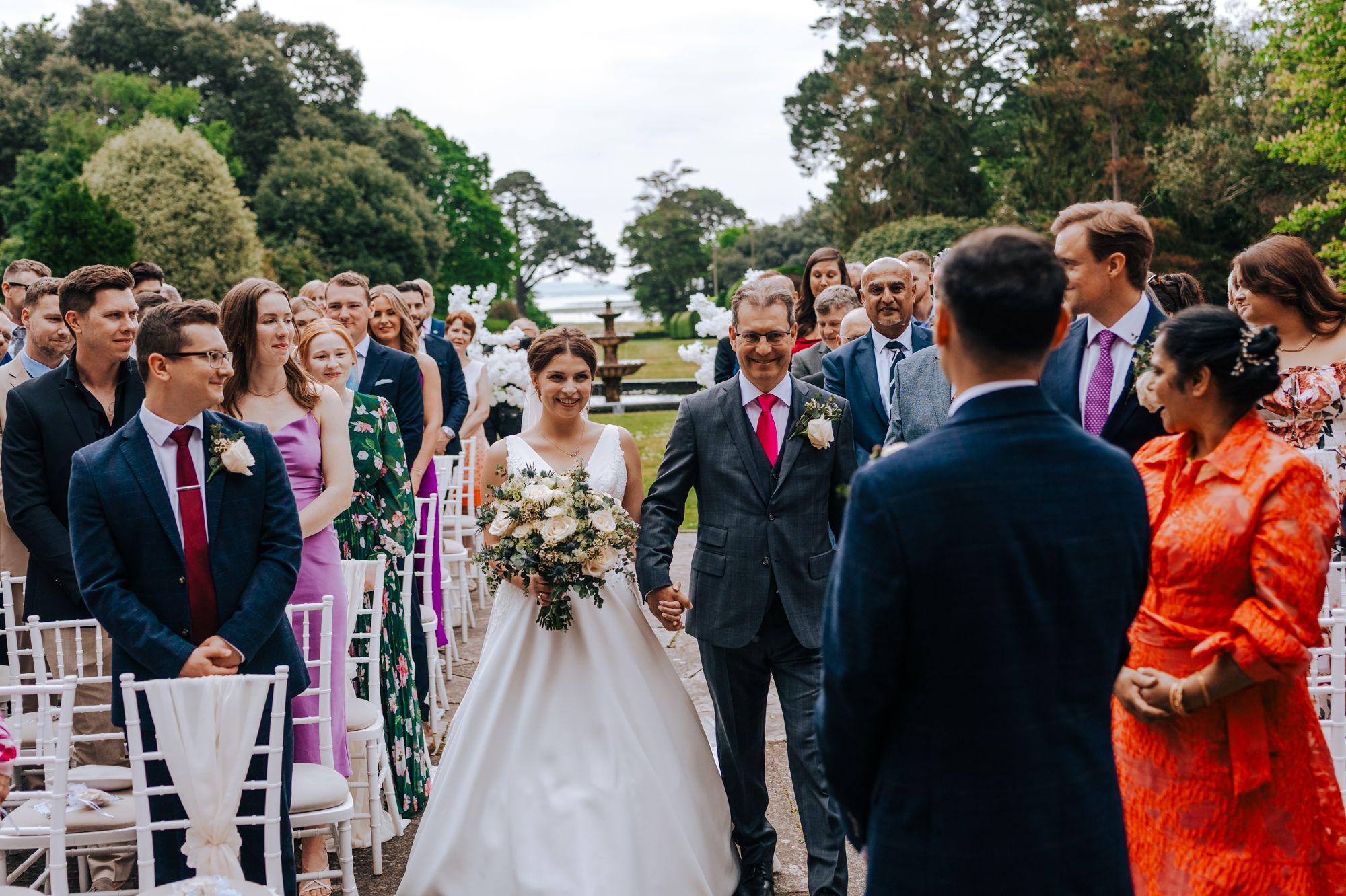 Couple portraits are short and relaxed. We use the gardens, terrace and coastal views while the light is right, then head straight back to the celebrations. The aim is always to keep you present with your guests.