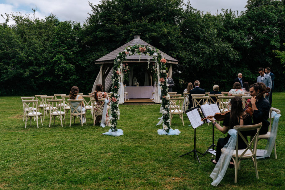 The wedding ceremony was held in Stanton Manor’s beautiful gardens to musical accompaniment from a string quartet. One of the many things I love about shooting wedding photography at Stanton Manor is the beautiful gardens that make a gorgeous backdrop in all of my images. Danica and Joel’s wedding ceremony was held under a pretty pagoda in the cherry orchard, with all of their guests seated beside them.