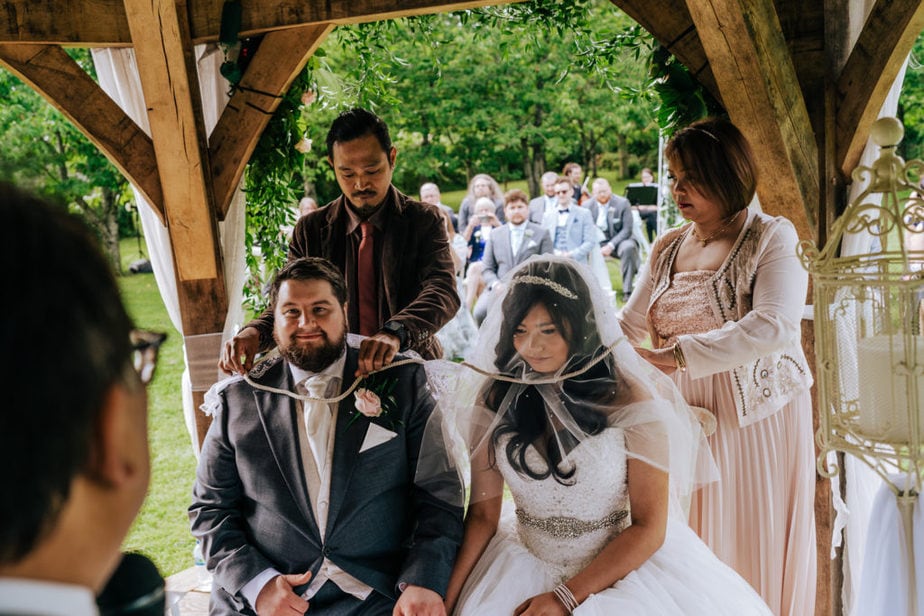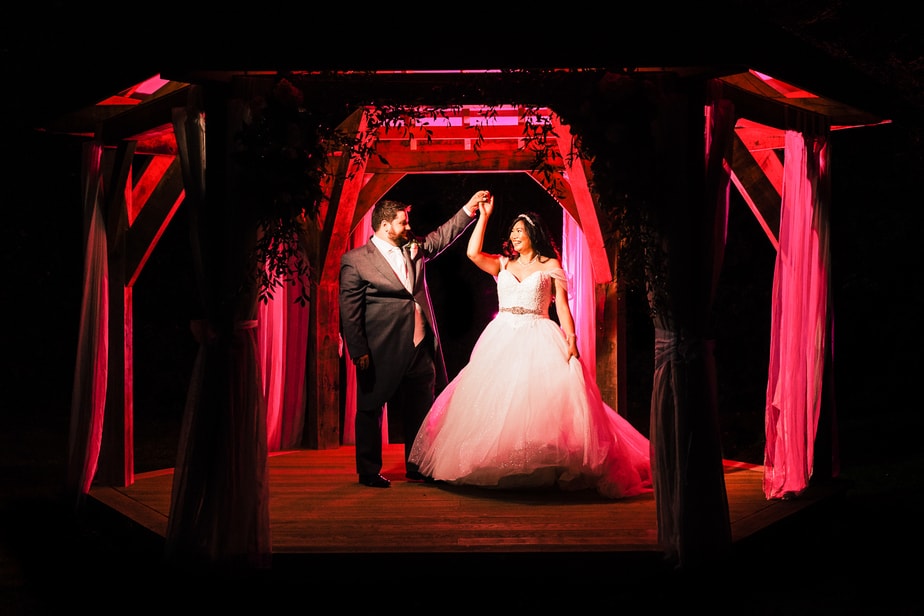 After the sun had set, I wanted to take one last image of Danica and Joel under the pagoda where they’d taken their marriage vows. It was my favourite image of the day, and the perfect image to close the story of their beautiful wedding day.